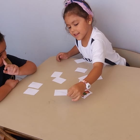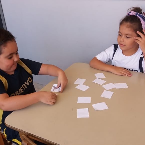 Alunos da Unidade I Vila Rio Branco aprendendo a palavras da língua Inglesa em forma de jogo de memória